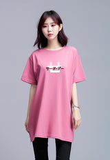 LTE82 ld oversize dress wanita mustard logo back katakan front pink