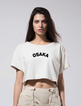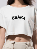 LTE89 kaos crop top oversize OLC wanita tulisan simpel "osaka" putih