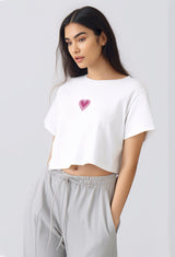 LTE91 kaos crop top oversize OLC wanita tulisan simpel "layered hearts" putih