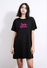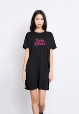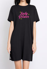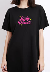 LTE95 long dress kaos korean style casual "lady power" hitam