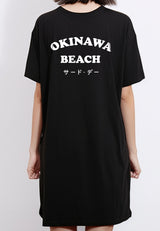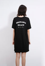 LTE96 long dress kaos t shirt kasual stretch "okinawa beach" hitam