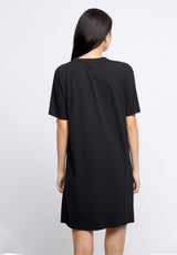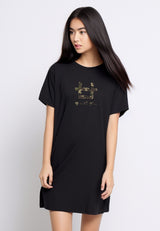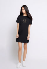 LTE99 long dress kaos t shirt wanita oversize hitam "logo icon camo hijau"
