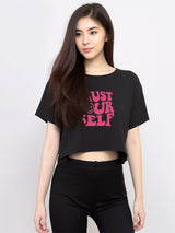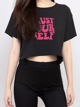 LTF15 kaos oversize crop top longgar wanita "trust yourself" hitam