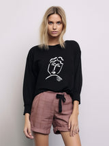 LTF20 kaos lengan panjang wanita kekinian LV "artsy face" hitam