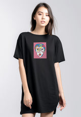 LTF30 dress hitam casual kaos dress mini dress t shirt dress wanita "lady portrait" hitam