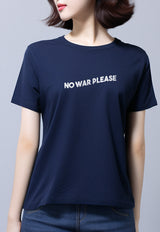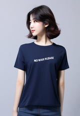 LTF34 kaos wanita lengan pendek slim fit "no war please" instacool navy