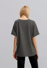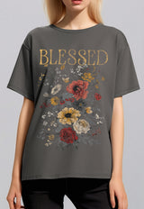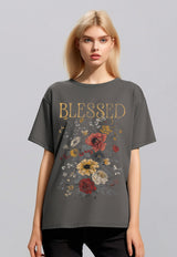 LTF37 kaos oversize wanita dark grey washed washing efek kaos band grunge distressed "blessed flowers" abu tua