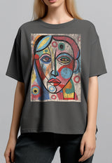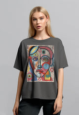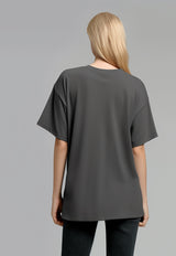 LTF38 kaos oversize wanita dark grey washed washing efek kaos band grunge distressed "cracked face" abu tua