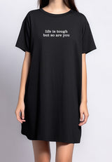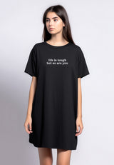 LTF47 long loose dress daster kaos wanita casual instacool LD "life is tough" hitam