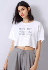 LTF53 crop top oversize tee "more hugs" putih