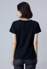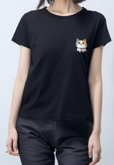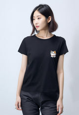 LTF57 Kaos Couple Wanita Tangan Pendek Gambar Kucing "Pocket Cats" Instacool Hitam