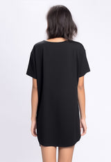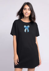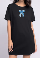 LTF60 Kaos Dress Loose Oversize Wanita bahan instacool "blue ribbon" hitam
