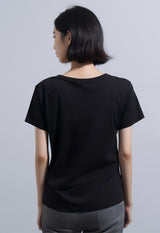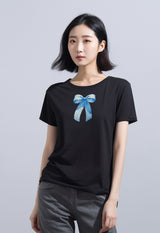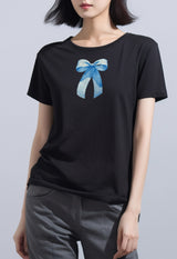 LTF61 Kaos Tangan Pendek Slim Fit Wanita bahan Instacool "blue ribbon" hitam