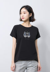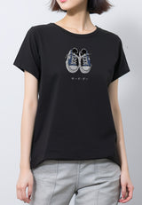 LTF66 kaos wanita lengan pendek slim fit gambar sepatu instacool ss "sneakers katakana" hitam