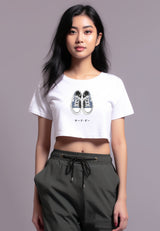 LTF68 kaos crop tee wanita RCP gambar sepatu instacool ss "sneakers katakana" putih