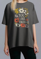 LTF70 Kaos Boyfriend Oversize Wanita Abu Tua Washed Effect "you are enough" instacool abu tua