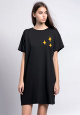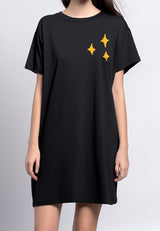 LTF77 Kaos gambar bintang Dress Long T Shirt Instacool LD "yellow sparkle" hitam