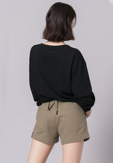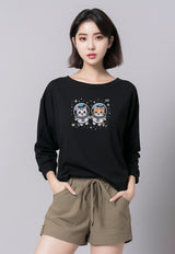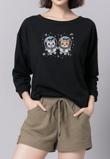 LTF84 Kaos Lengan Panjang Wanita "astronot kucing anjing" Instacool hitam