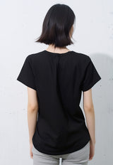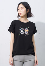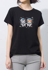 LTF86 Kaos Wanita Lengan Pendek Slim Fit Instacool "astronot kucing dan anjing" hitam