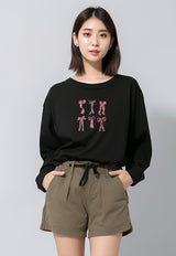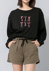 LTF91 Kaos Wanita Gambar Coquette Lengan Panjang Adem Pita Ribbon Pink Hitam