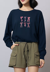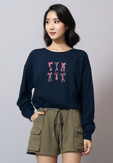 LTF92 Kaos Wanita Gambar Coquette Lengan Panjang Adem Pita Ribbon Pink Navy