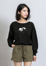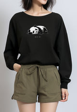 LTG03 Kaos Wanita Gambar Panda Lengan Panjang Adem LV "panda katakana" hitam