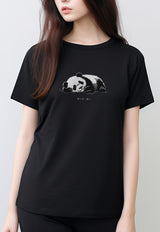 LTG04 Kaos Wanita Gambar Panda Lengan Pendek Adem Instacool ss lds "panda katakana" hitam