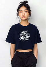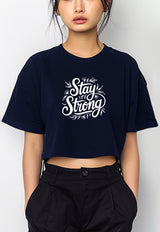 LTG12 Kaos Crop Oversize Navy Wanita OLC Instacool "stay strong" navy