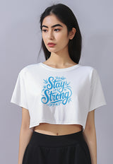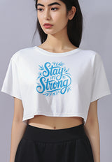 LTG14 Kaos Crop Oversize Navy Wanita OLC Instacool "stay strong" putih