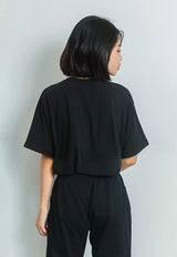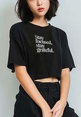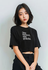 LTG15 Kaos Crop Oversize Navy Wanita OLC Instacool "stay focused" hitam