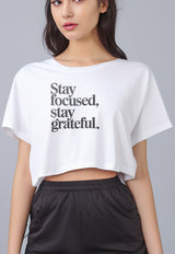 LTG17 Kaos Crop Oversize Navy Wanita OLC Instacool "stay focused" putih