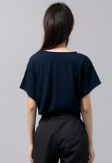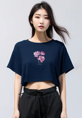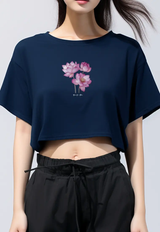 LTG48 Kaos Wanita Gambar Bunga Lotus OLC Crop Oversize Navy