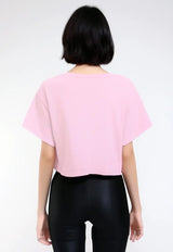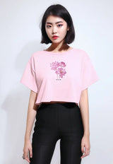LTG49 Kaos Wanita Gambar Bunga Lotus OLC Crop Oversize Light Pink