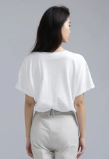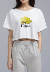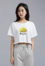LTG50 Kaos Wanita Gambar Bunga Lotus Kuning OLC Crop Oversize Putih