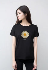 LTG53 Kaos Gambar Bunga Wanita Lengan Pendek Instacool ss lds "daisy katakana" hitam