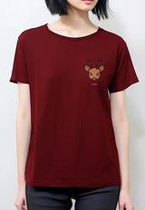LTG56 Kaos Natal Wanita SS LDS Reindeer katakana Merah Maroon