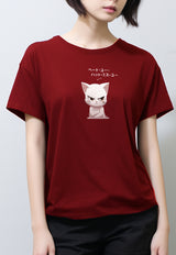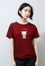 LTG68 Kaos Gambar Kucing Tangan Pendek Wanita Instacool "cat quote" maroon