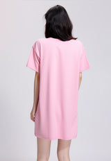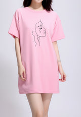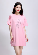 LTG78 Dress Bahan Kaos Wanita "half face" pink