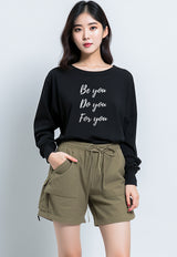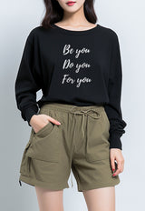 LTG82 Kaos lengan panjang wanita LV "be you do you for you" hitam