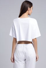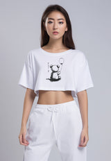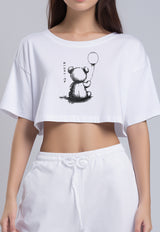 LTG94 Kaos Crop Wanita OLC teddy baloon putih