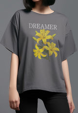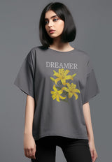LTG97 Kaos Oversize Efek Washed Acid "dreamer hibiscus" abu tua