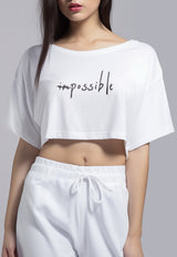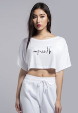 LTH02 Crop Top OLC Wanita "im possible" putih