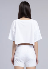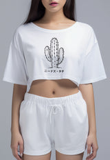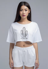 LTH05 Kaos Crop Top Wanita "cactus outline" OLC putih