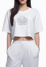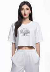 LTH10 Kaos Crop Top Oversize OLC "paris" putih