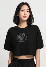 LTH12 Kaos Crop Top Oversize OLC "paris" hitam