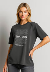 LTH13 kaos oversize wanita dark grey efek washing "grateful"