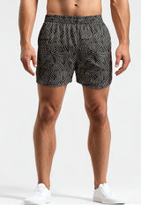 MB097 Celana Pendek Olahraga Pria Motif 4way Stretch "labyrinth hitam"