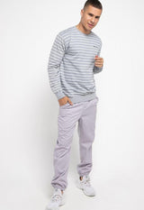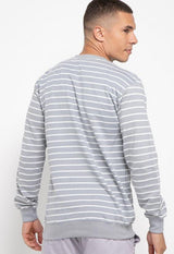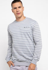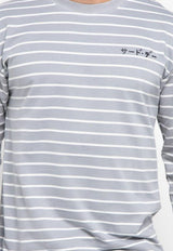 Third Day MO185 sweater casual pria dakir katakana stripe putih abu