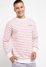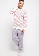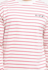 Third Day MO186 sweater casual pria dakir katakana stripe putih pink