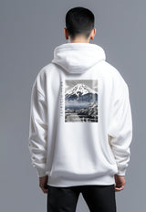MOB06 Hoodie Gambar Belakang Keren Gunung Fuji Bahan Scuba Putih